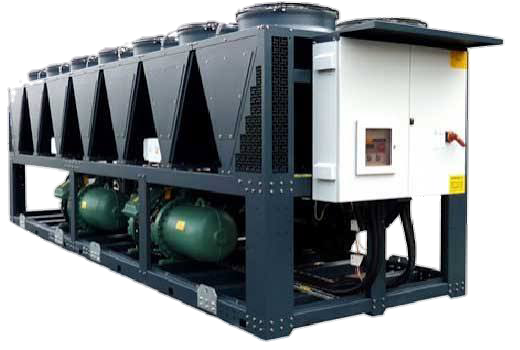 چیلر هوا خنک: کندانسور هوایی، راندمان متوسط، عمر کمتر، بدون نیاز به آب